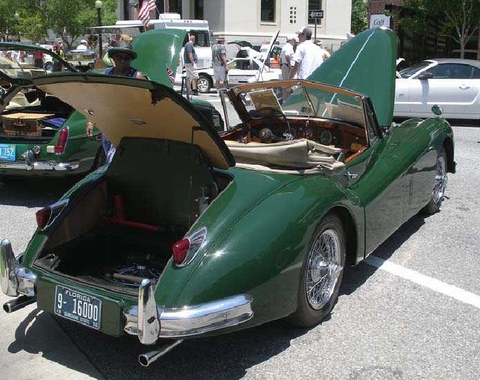 The annual Hadji Temple All-Car Show in Pensacola features a single British class. Three very different British cars were there. The winner, Mardi Gras MGs’ Michael Bamford, showed his perfect ’61 Daimler SP-250s, the best of his three SP-250s, and it was spectacular. Judges graded all four areas, Outside, Engine compartment, Interior, and Undercarriage and found Michael’s SP-250 an easy call. My ’80 Triumph TR-8 finished second, and George Mohanco’s ’56 XK-140 finished third.